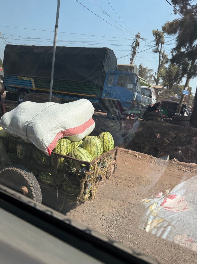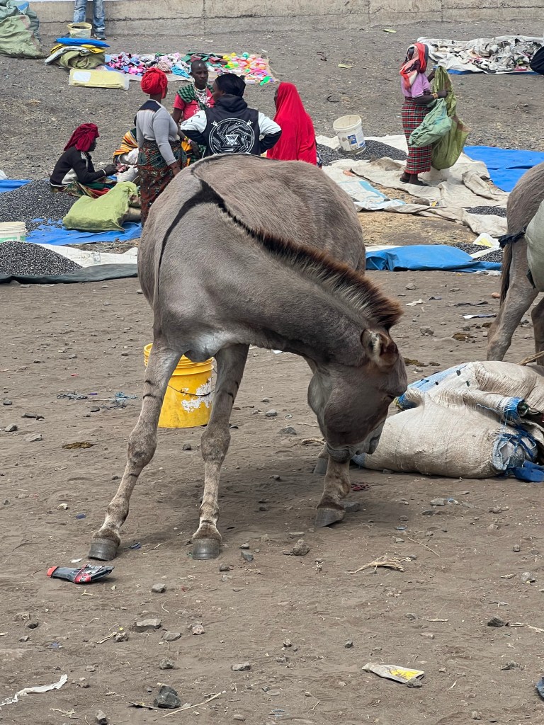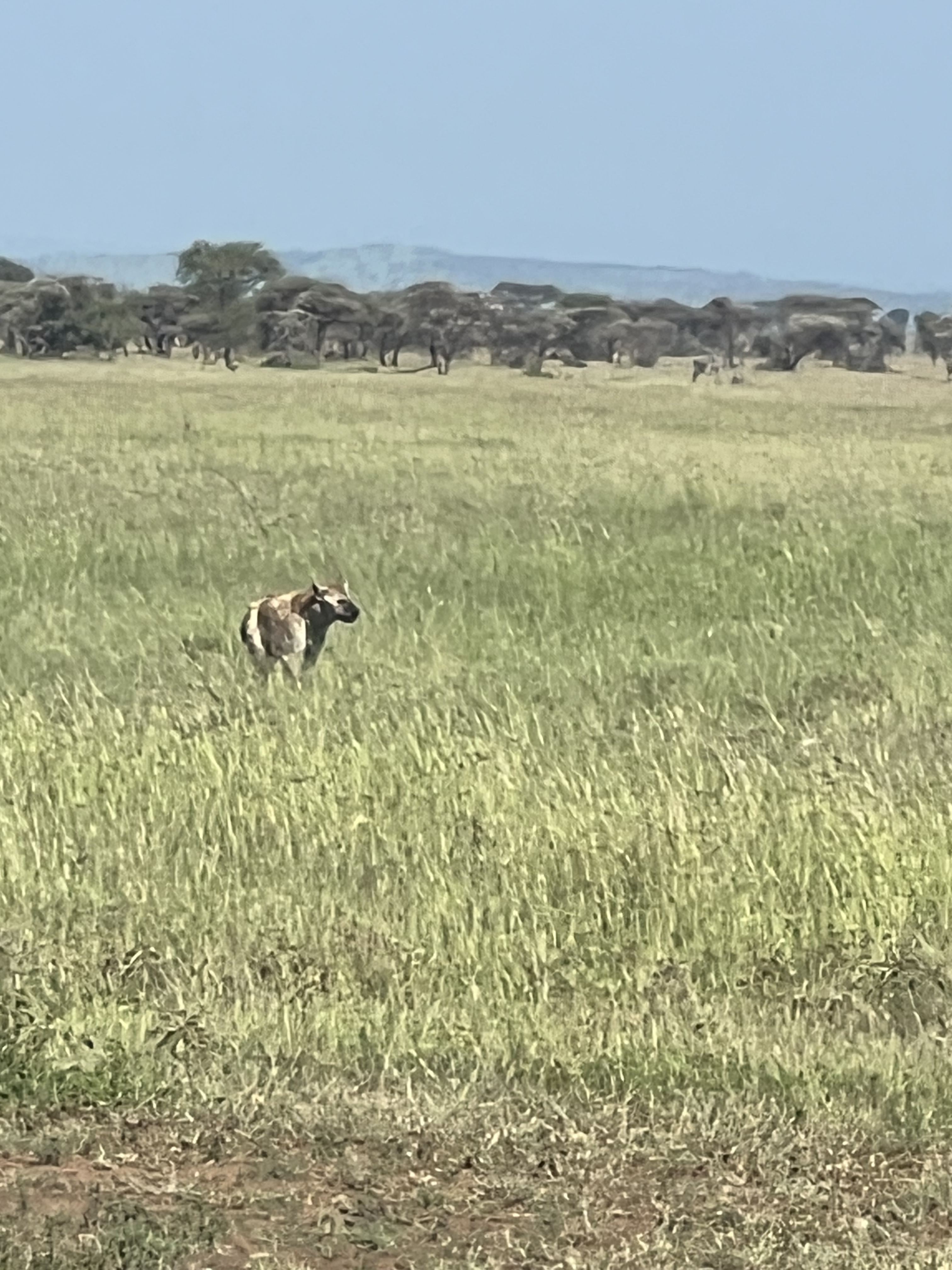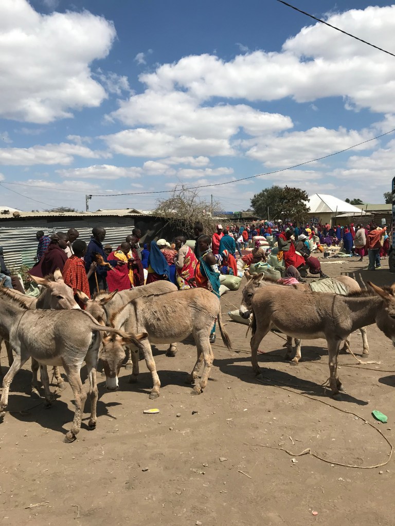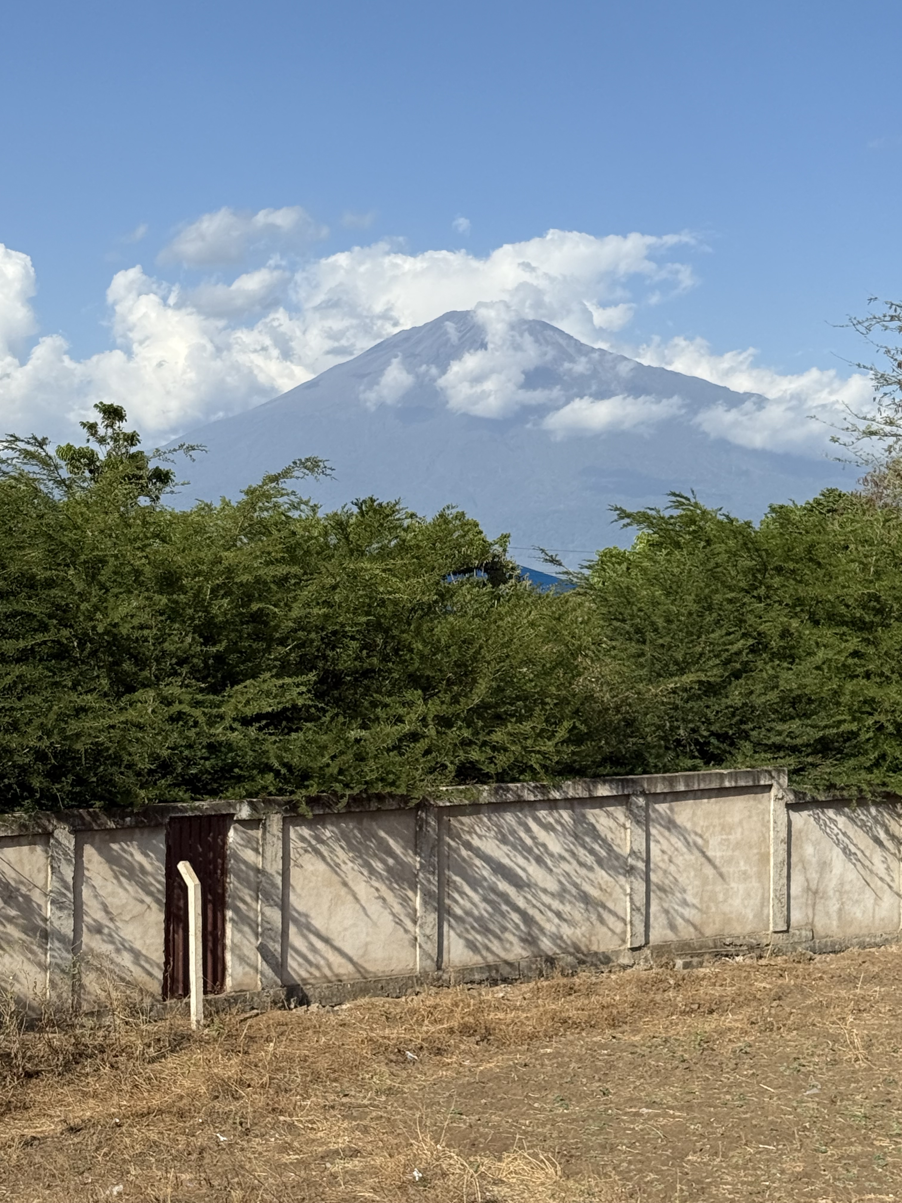 You see so many different things as you drive along the road here! I see a lot of donkeys who seem to be wandering by themselves sometimes, but you also see them hauling water jugs. It is very dry here as the rainy season has not yet begun (although it did rain at my place the other night which brings unwelcome critters: baby mosquitoes). Because it is so dry, the people and animals have to walk a long way to get water, so they bring the donkeys to carry many jugs which will last them longer. Some walk up to and over ten miles one way to find water! I always see flocks of sheep, goats, and cattle on my drives. I wish I could take better pictures of them, but I’m in a moving vehicle on an iPhone, lol. The Maasai love bright colors, so their clothes really stand out against the dry, dusty land. It’s really exactly how you would imagine their ancestors looked one thousand years ago, but then you see them riding on a piki-piki (motorcycle) in their Maasai clothes talking on a cell phone, and you remember it is 2025.