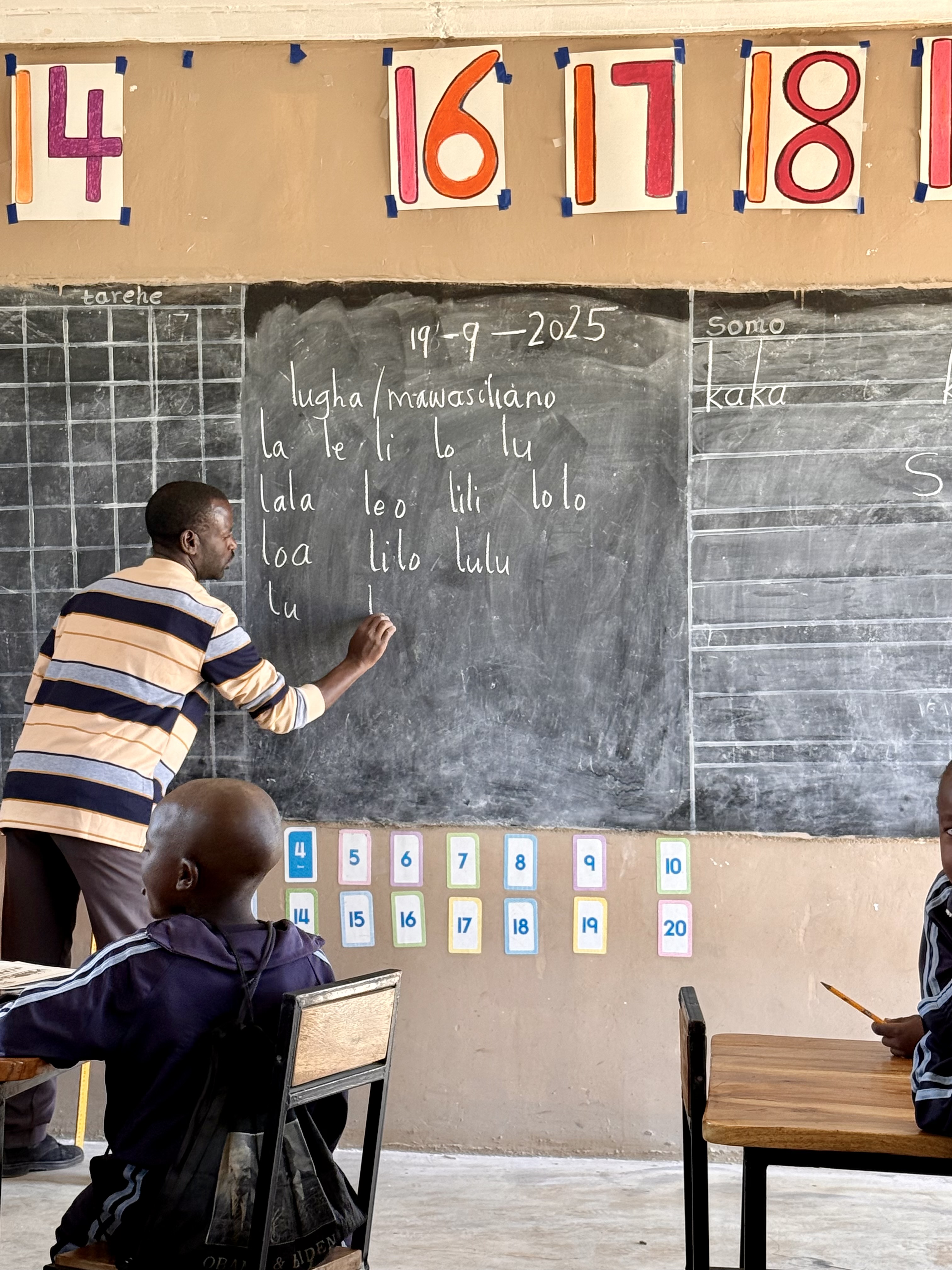 Our school mainly focuses on teaching the students how to go to school and learning some Swahili and some English. We do follow the Tanzanian nursery school curriculum as well. We partner with the local primary school down the street, and their headmistress comes and assesses our students to see who is ready to move up each year. All of their personal children (headmistress and staff) have been educated at Namayana Nursery, so they really support our work in the community. By law, students have to start primary school at age six, and the school year starts in January and goes through December. There are three vacation times throughout the year. The first is around Easter which is the fall season here. This one is typically two weeks long. The next one is usually the month of June (or June 7-July 7-ish). The last one is around September and is also usually about two weeks long. Then they get the month of December off until the next school year starts again in January. Of course there are various holiday days sprinkled throughout the year, and this year is an election year, so they will get that day off next week. Students are not required to go through a preschool curriculum, but the headmistress has told us that she can see a difference between the ones who have and the ones who have not.