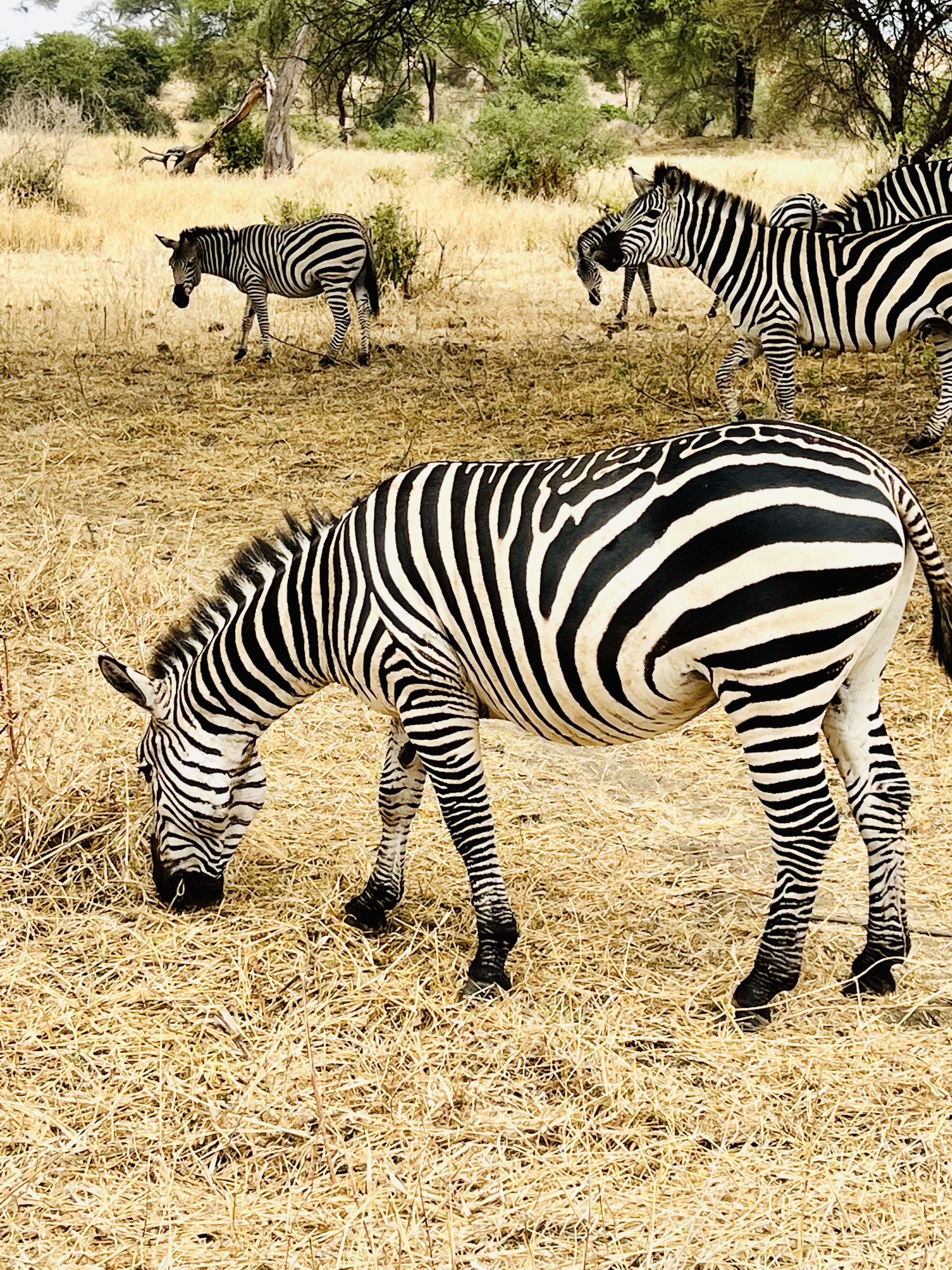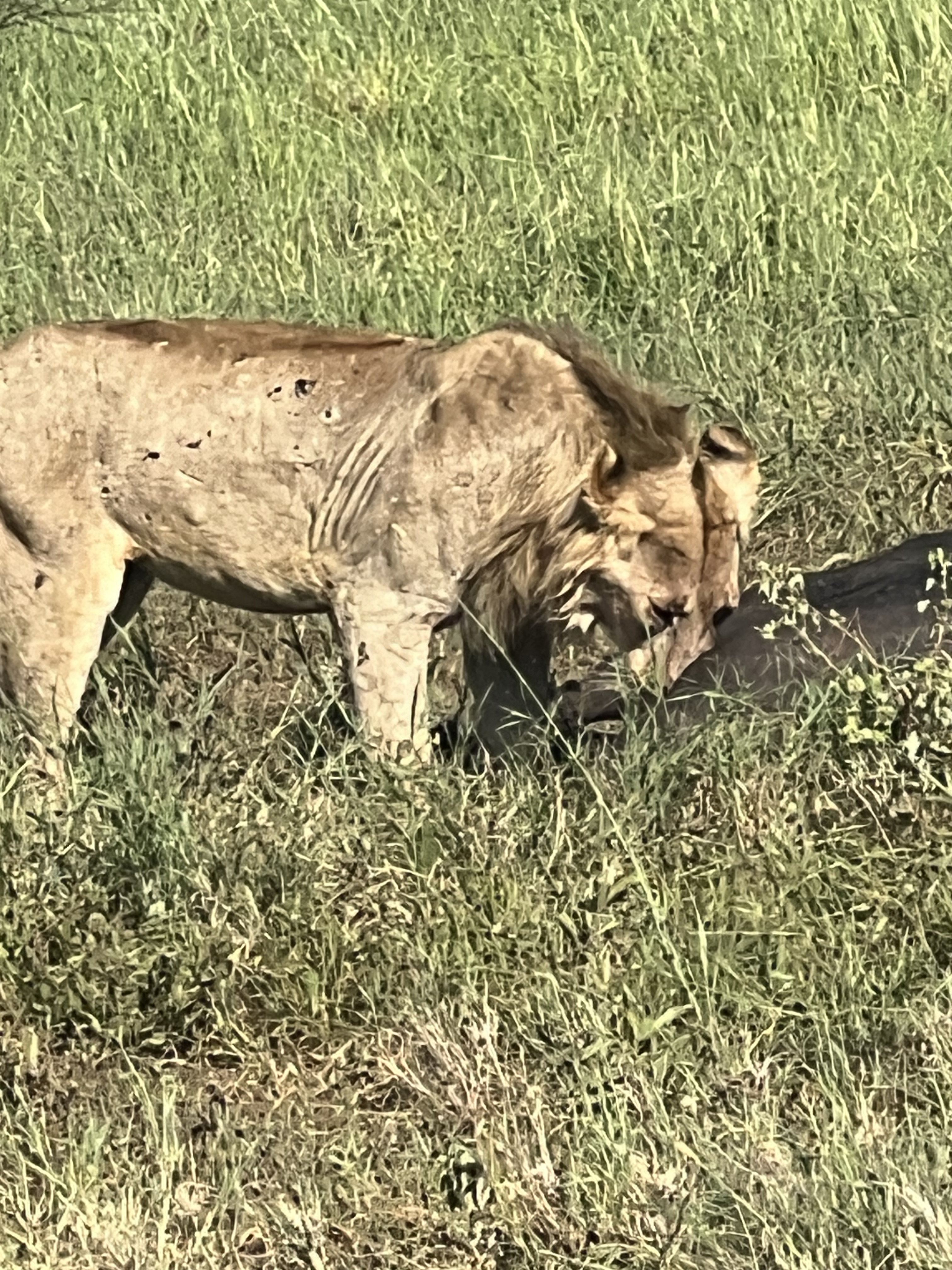 The best park by far is the Serengeti National Park. I think when people think of a safari in Africa, they think of the Serengeti and the song from Toto, “Sure as Kilimanjaro rises like Olympus above the Serengeti…” To get here, you drive through Ngorongoro (not the crater itself), past Olduvai Gorge which is considered the “Cradle of Civilization” and contain the “Footprints of Man” (which I have also seen on a different trip to Loliondo and Lake Natron near Mt. Lengai), and on into Serengeti. You can see ALL of the animals there (although I STILL haven’t seen a rhino!). I spent three days there, and it was the perfect amount of time. On the first evening as we were about to turn onto the road leading to my camp, we came across two female lionesses with a fresh kill (wildebeest or water buck, I can’t remember which). They and two male lions ate on that kill the entire three days I was there. You could see vultures flying overhead and hyenas trying to get the courage to confront the lions and steal some meat in the distance. It was truly the “Circle of Life”. I went in December which is one of the best times to see the zebra/wildebeest migration through the Serengeti.