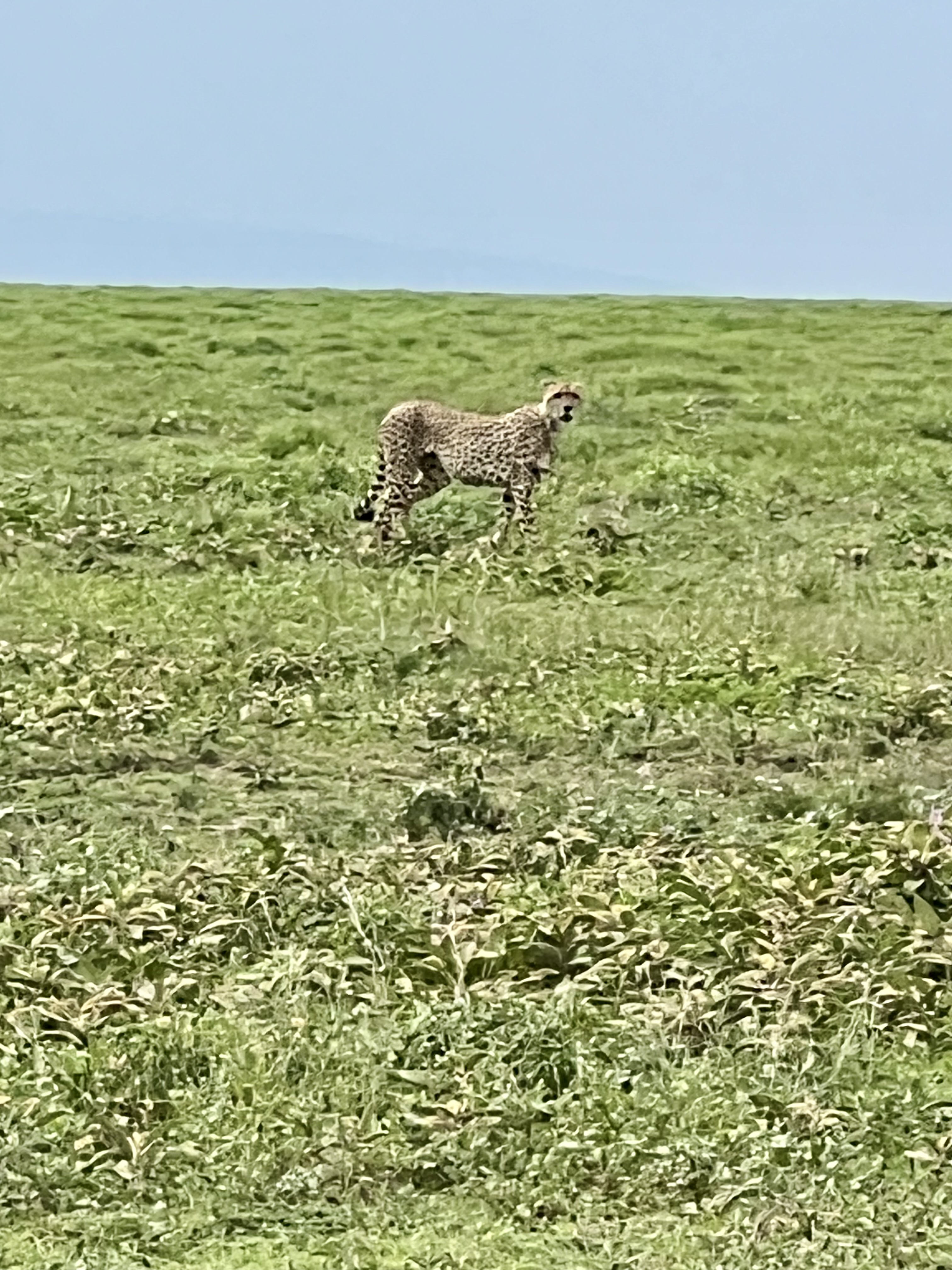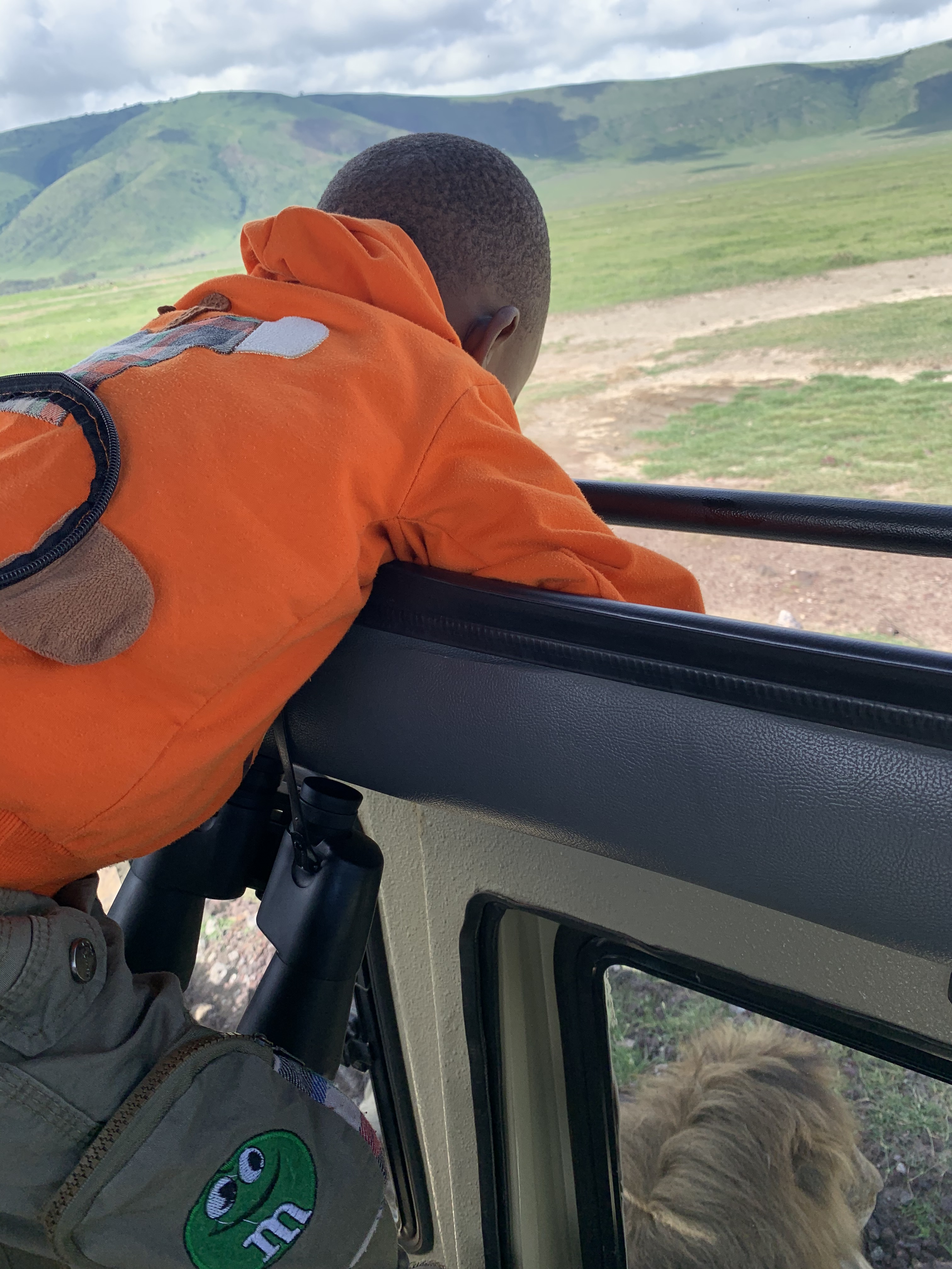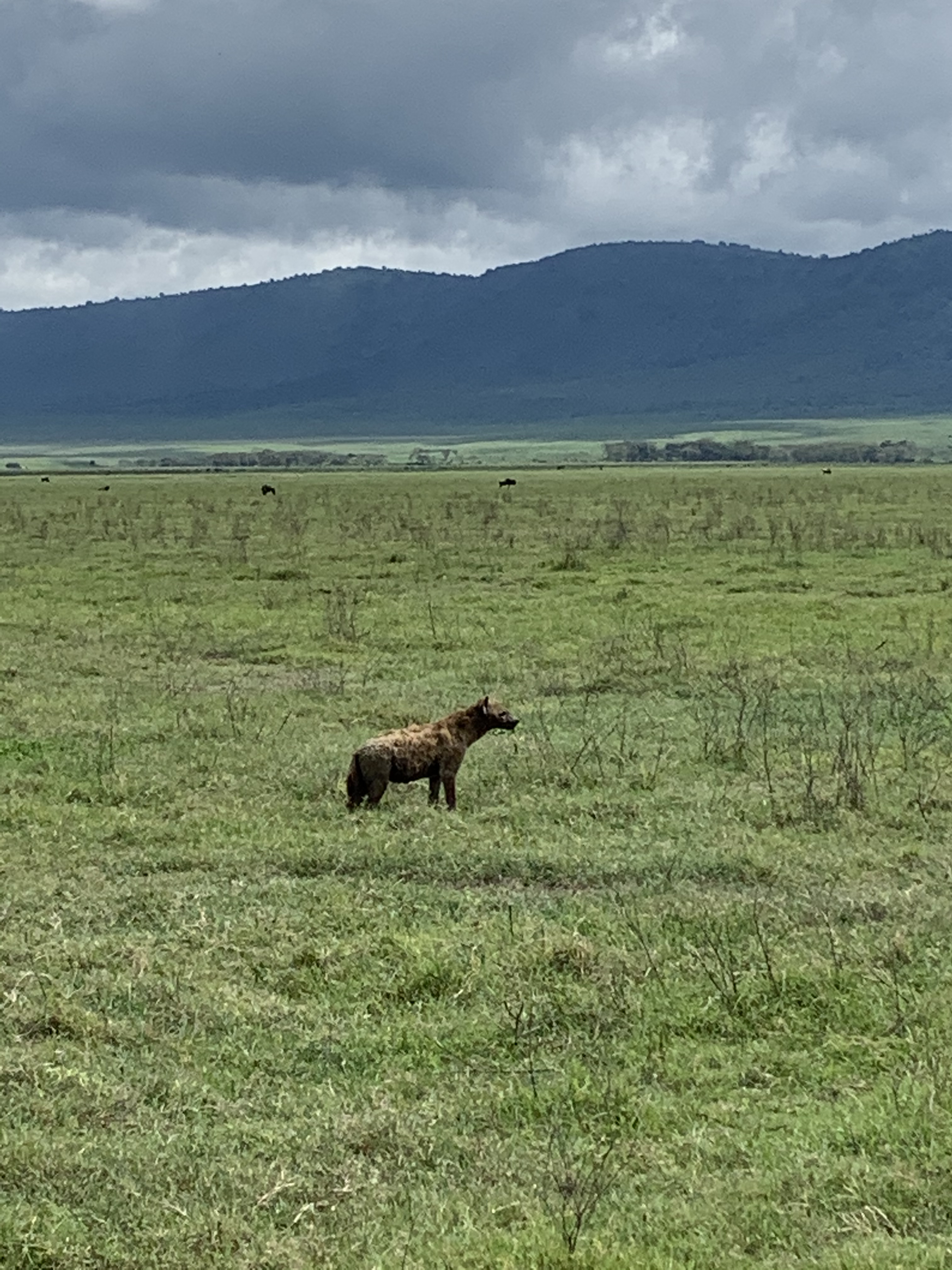 One year I was able to visit Ngorongoro Crater which is the world’s largest volcanic caldera and is located in part of the famous Rift Valley. To get into the crater, you have to drive up and up the mountainside (hoping to see a gorilla or two) and then down into the crater. Inside the crater, you can find all five of the “Big Five” here: lions, leopards, elephants, Cape buffalo, and rhinos! I have seen all five, but I really don’t consider the rhino because we saw him, but he was so far away that I don’t really consider it a true sighting. That day we saw so many animals, but the coolest thing that happened to us was two male lions came and LAID DOWN RIGHT NEXT TO OUR VEHICLE to take a nap! My friend, Langoi, and his son (my godson), Loy, came with me that day. Loy was hanging out of the top and I was terrified that he was going to be a snack for these lions! But, man! What a cool experience! Another cool experience was eating lunch at the “HIppo Pool” and watching the hippos bob up and down in the water. On that trip, I was staying at a camp near Lake Manyara, and the hippos would come “visit” me every night. They would eat outside of my tent, and they are very loud eaters! We also had a wildebeest/zebra stampede through the middle of camp one night. You could hear the animals racing up and down and then would hear the cries of the Maasai guards following them to steer them out of the camp.