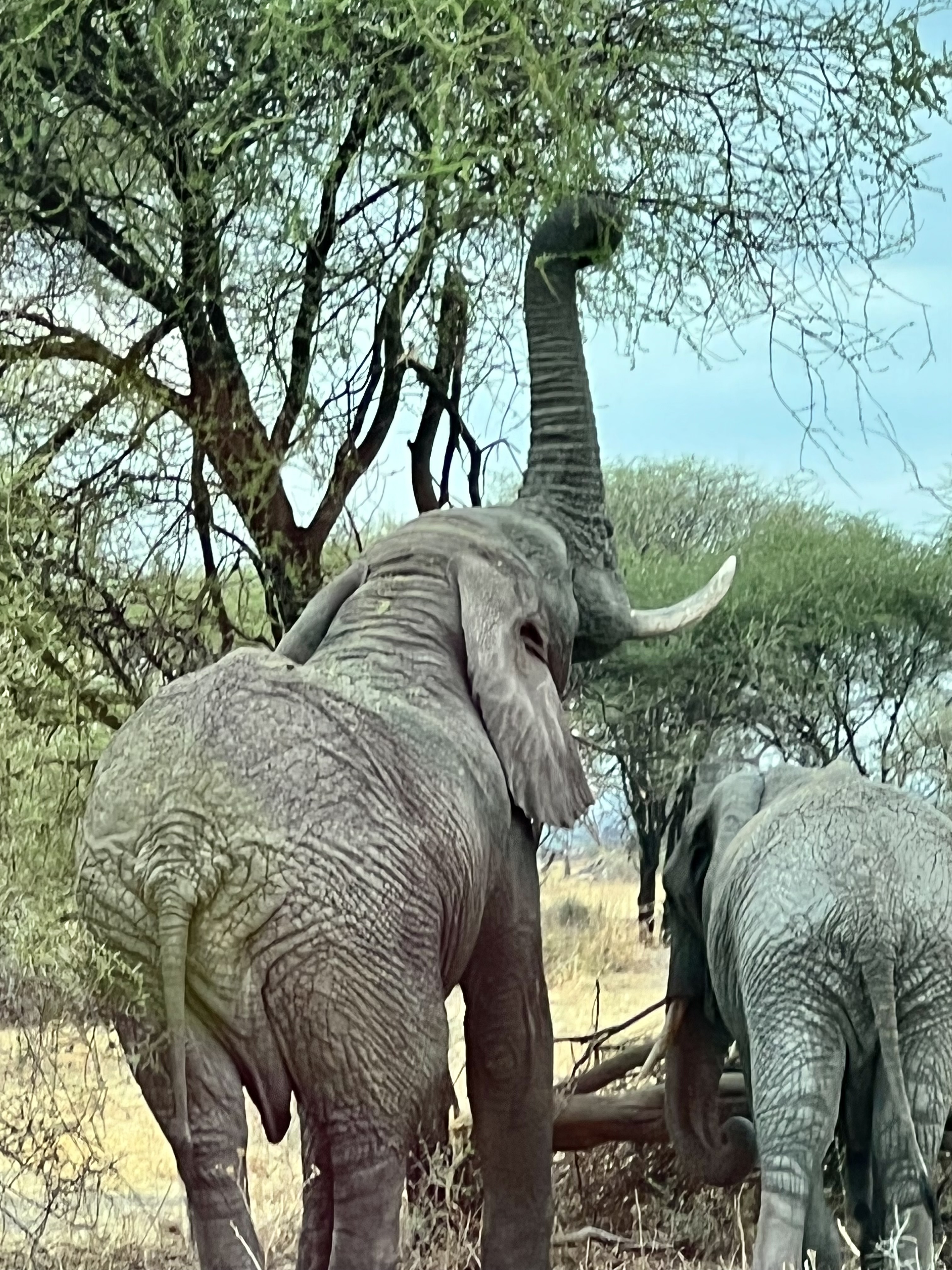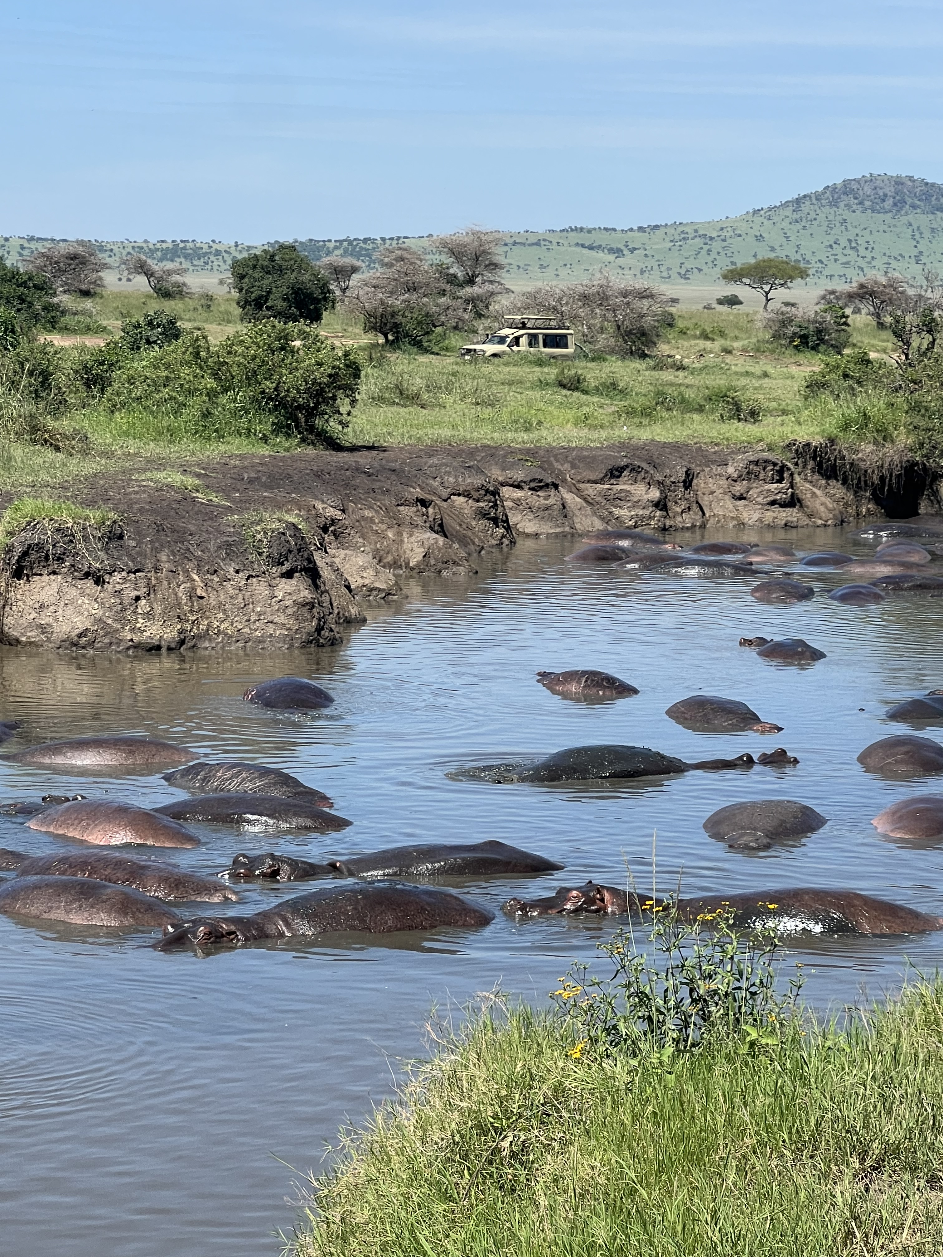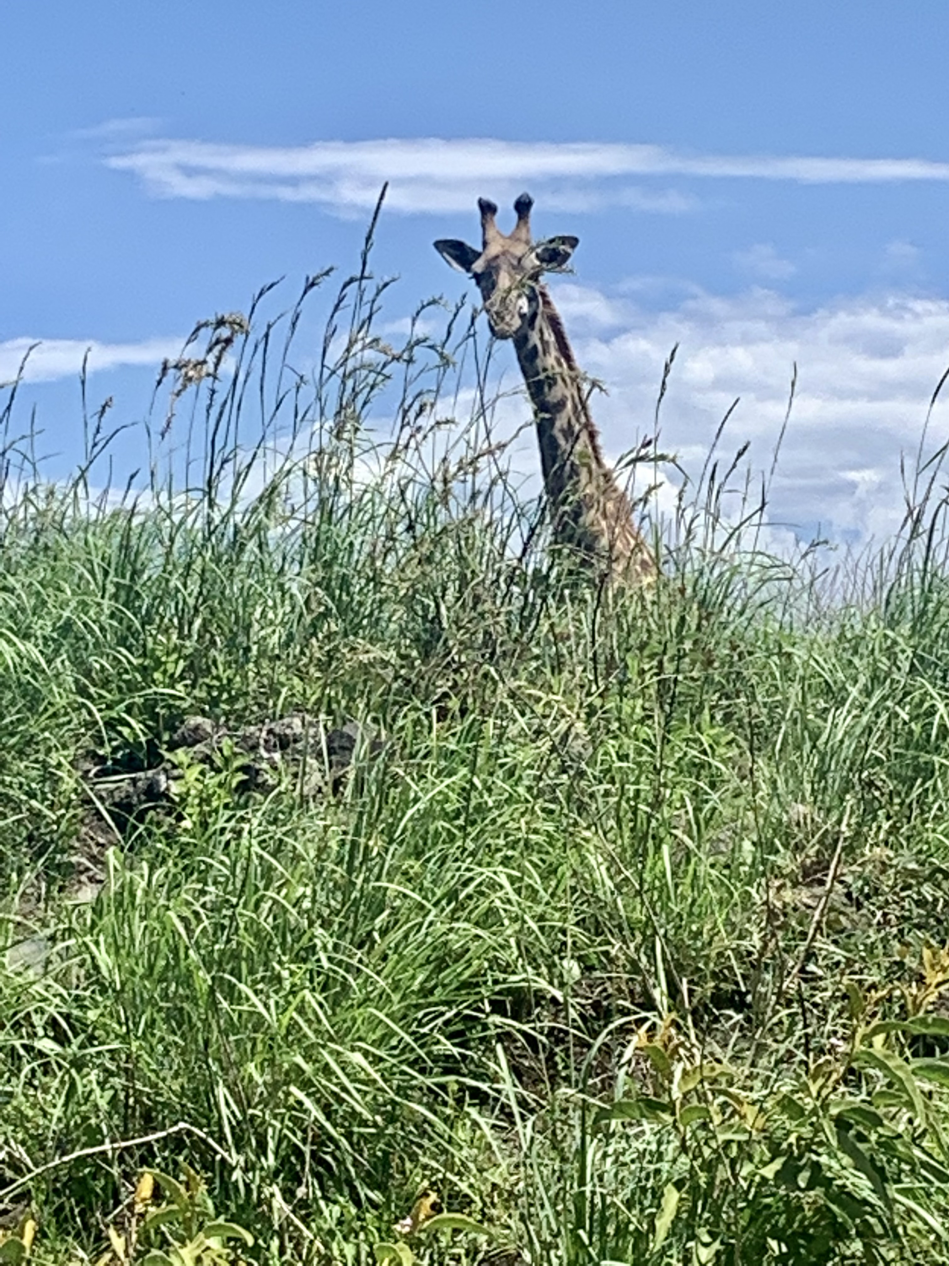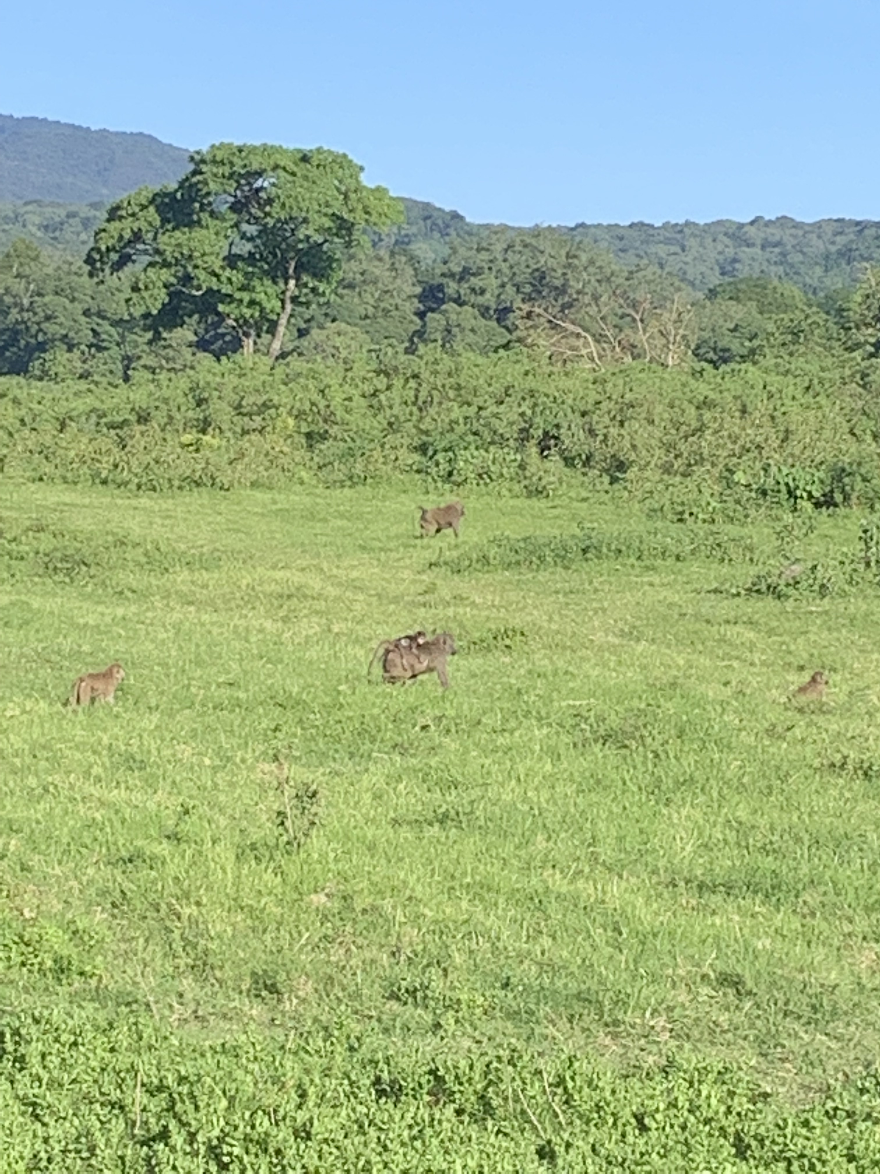 One year I was able to visit Ngorongoro Crater which is the world’s largest volcanic caldera and is located in part of the famous Rift Valley. To get into the crater, you have to drive up and up the mountainside (hoping to see a gorilla or two) and then down into the crater. Inside the crater, you can find all five of the “Big Five” here: lions, leopards, elephants, Cape buffalo, and rhinos! I have seen all five, but I really don’t consider the rhino because we saw him, but he was so far away that I don’t really consider it a true sighting. That day we saw so many animals, but the coolest thing that happened to us was two male lions came and LAID DOWN RIGHT NEXT TO OUR VEHICLE to take a nap! My friend, Langoi, and his son (my godson), Loy, came with me that day. Loy was hanging out of the top and I was terrified that he was going to be a snack for these lions! But, man! What a cool experience! Another cool experience was eating lunch at the “HIppo Pool” and watching the hippos bob up and down in the water. On that trip, I was staying at a camp near Lake Manyara, and the hippos would come “visit” me every night. They would eat outside of my tent, and they are very loud eaters! We also had a wildebeest/zebra stampede through the middle of camp one night. You could hear the animals racing up and down and then would hear the cries of the Maasai guards following them to steer them out of the camp.
