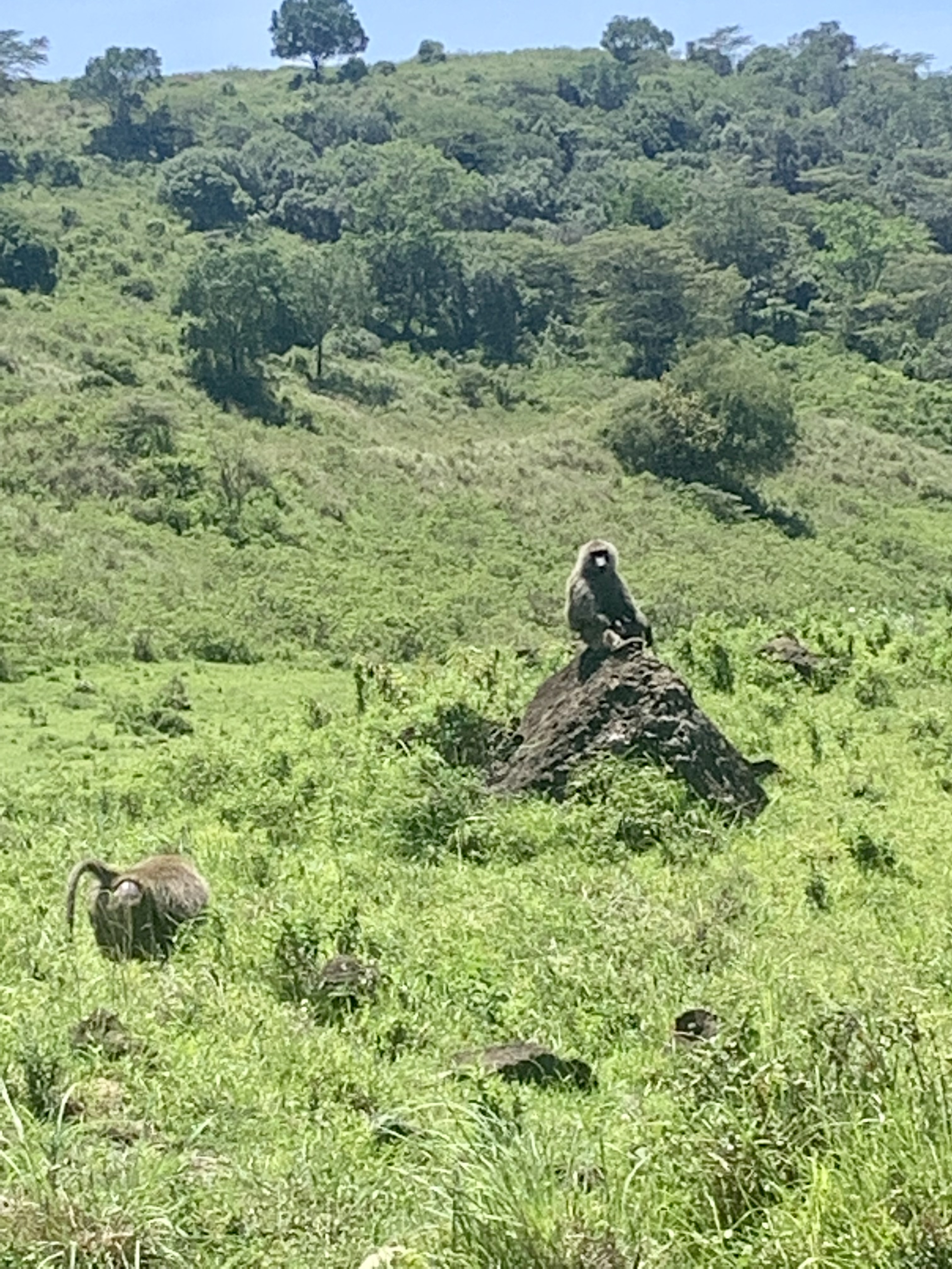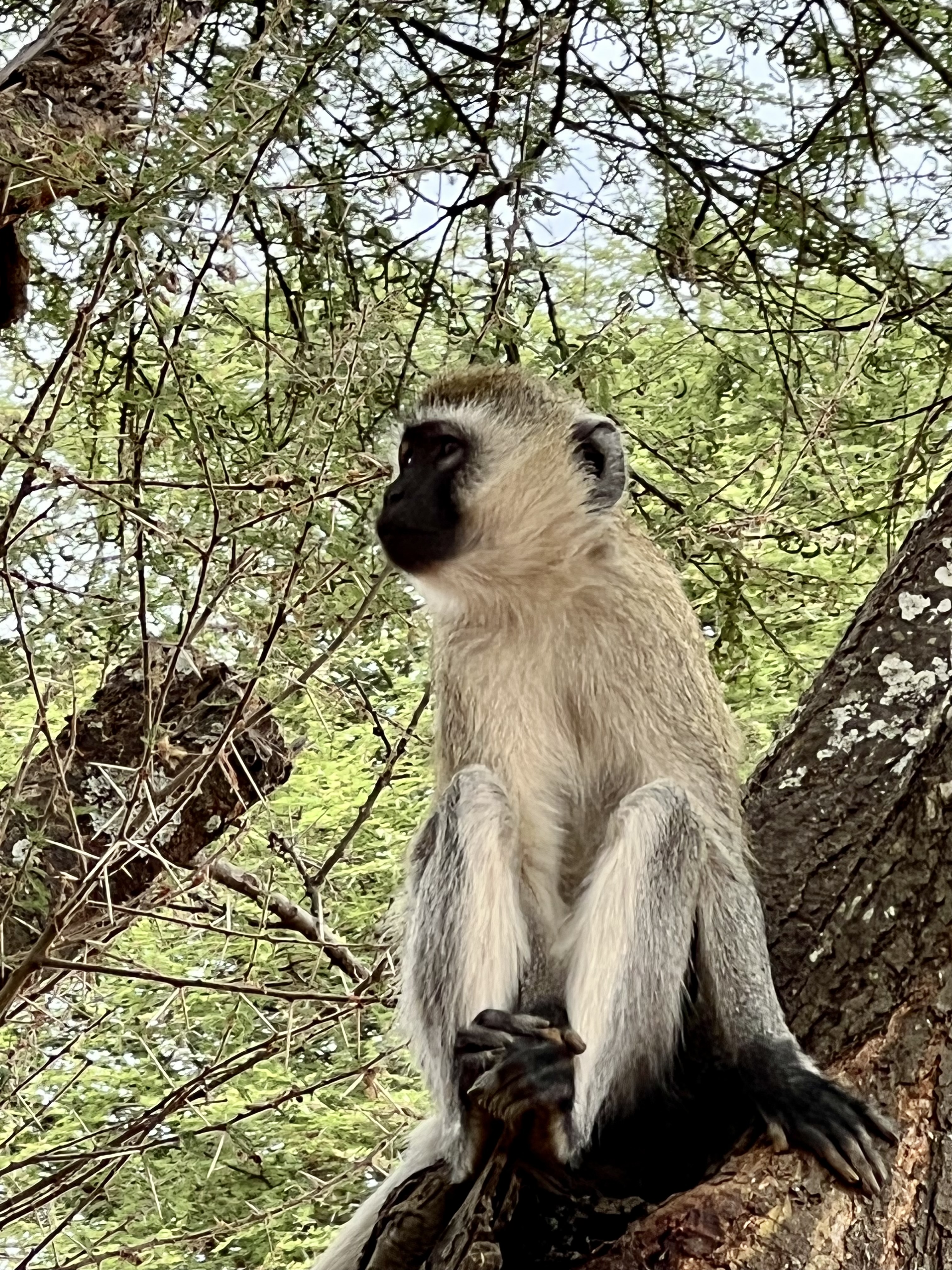 Today I want to talk about how fortunate I have been to see so many amazing sights here in Tanzania! It is such a beautiful country, and I feel like I have just scratched the surface of all the national parks here. Last week I was really blessed to visit a lake here in Arusha. I didn’t even know about this lake, and it’s literally thirty minutes from where I live. We went in the late afternoon and had a guide row us around the lake, telling us about the different birds and animals there. If you go in the late afternoon, the sun is setting across the water which is reason enough, but the birds are also coming home to nest for the evening. We saw different types of kingfishers, herons, weavers (the male builds a nest for the female during mating season, and she picks which one she likes), and even two fish eagles! Truly an incredible experience. Also in Arusha is the Arusha National Park. A few years ago, I took the staff there on an outing. One of the main things I love about this park is that you can see both Mt. Kilimanjaro and Mt. Meru at the same time here! It’s really cool! The other thing I loved was seeing Colobus monkeys for the first time there. These are black and white monkeys who don’t have thumbs, so they jump from branch to branch or tree to tree.