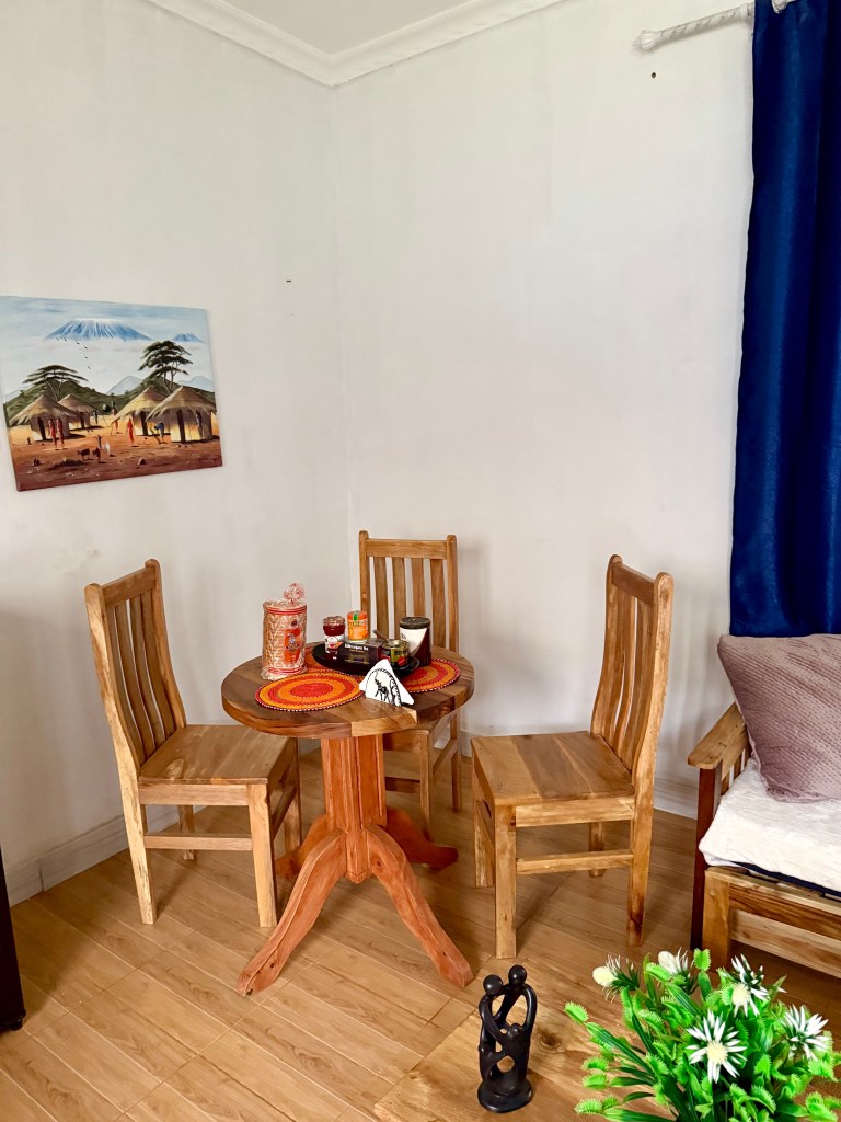 Karibu sana to my little blog! I have spent the past (almost) two weeks getting settled and visiting my students, staff, and friends. Last April I was able to come for a logistics visit during my spring break in America. During that time, I found a little apartment in the same village where I normally stay (shout-out Kisongo!!) which is fully furnished. That means it has two little rooms: a kitchen/living area and a bedroom plus an “en-suite” bathroom. Truly it is just enough space for me and not too difficult to keep clean at all. However, as I am writing this, my cleaning ladies are here cleaning, changing my sheets, and doing my laundry. One of the perks of Tanzania is that I am able to afford these “luxuries” because the cost of living is much lower than back home.