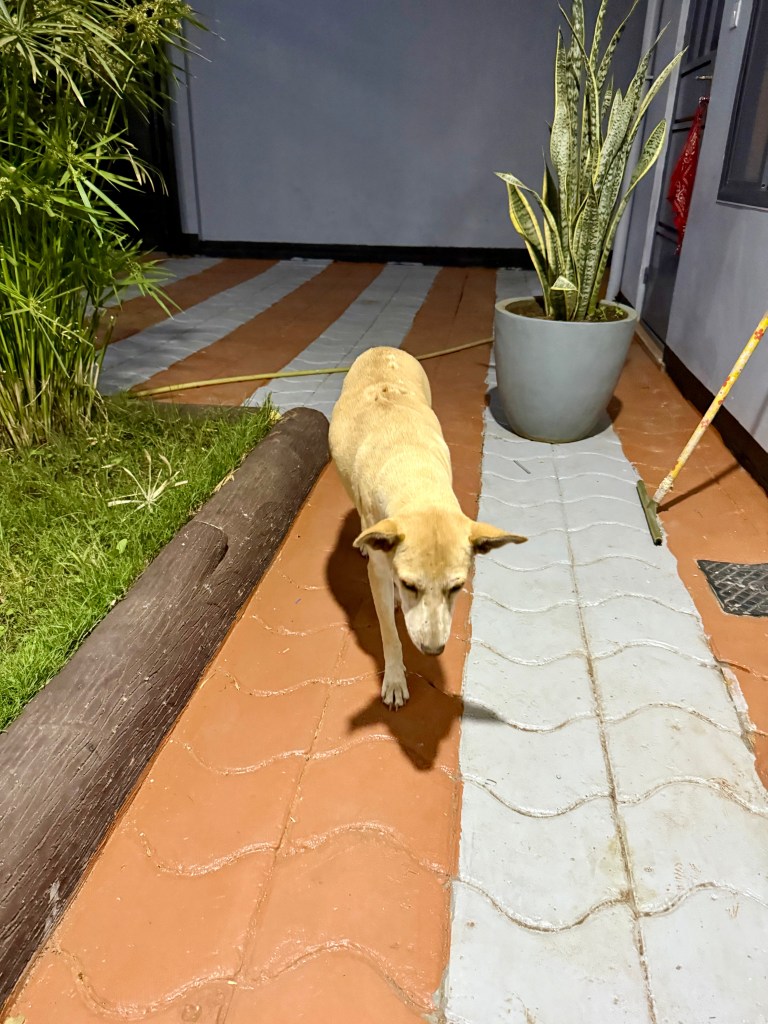 As you can see, my living situation is very comfortable. The dog is the “courtyard dog” (as opposed to a junkyard dog). I haven’t given her a name yet, but I’m sure I will before long. She is very sweet and loves my cooking :). My first night here, after going to the local market to get a few items for my shelves and small refrigerator, I made a very American dish for my first cooking experience in Tanzania: spaghetti! (Okay, technically it’s Italian, I guess.) Enjoy the pictures below of my first time cooking in Tanzania after all these trips over the years!